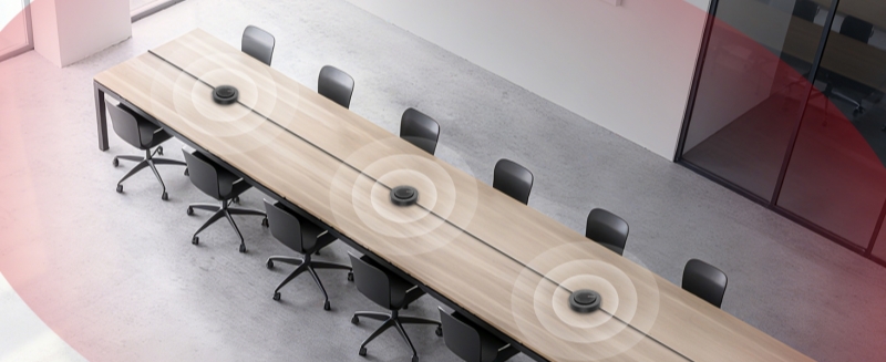 Each unit covers a 5-meter radius, and when cascaded, the system can support large meeting spaces with synchronized, echo-free audio. Whether deployed along a long conference table or distributed across a wide room, the AnyCo A6 ensures that every voice is heard clearly and naturally.